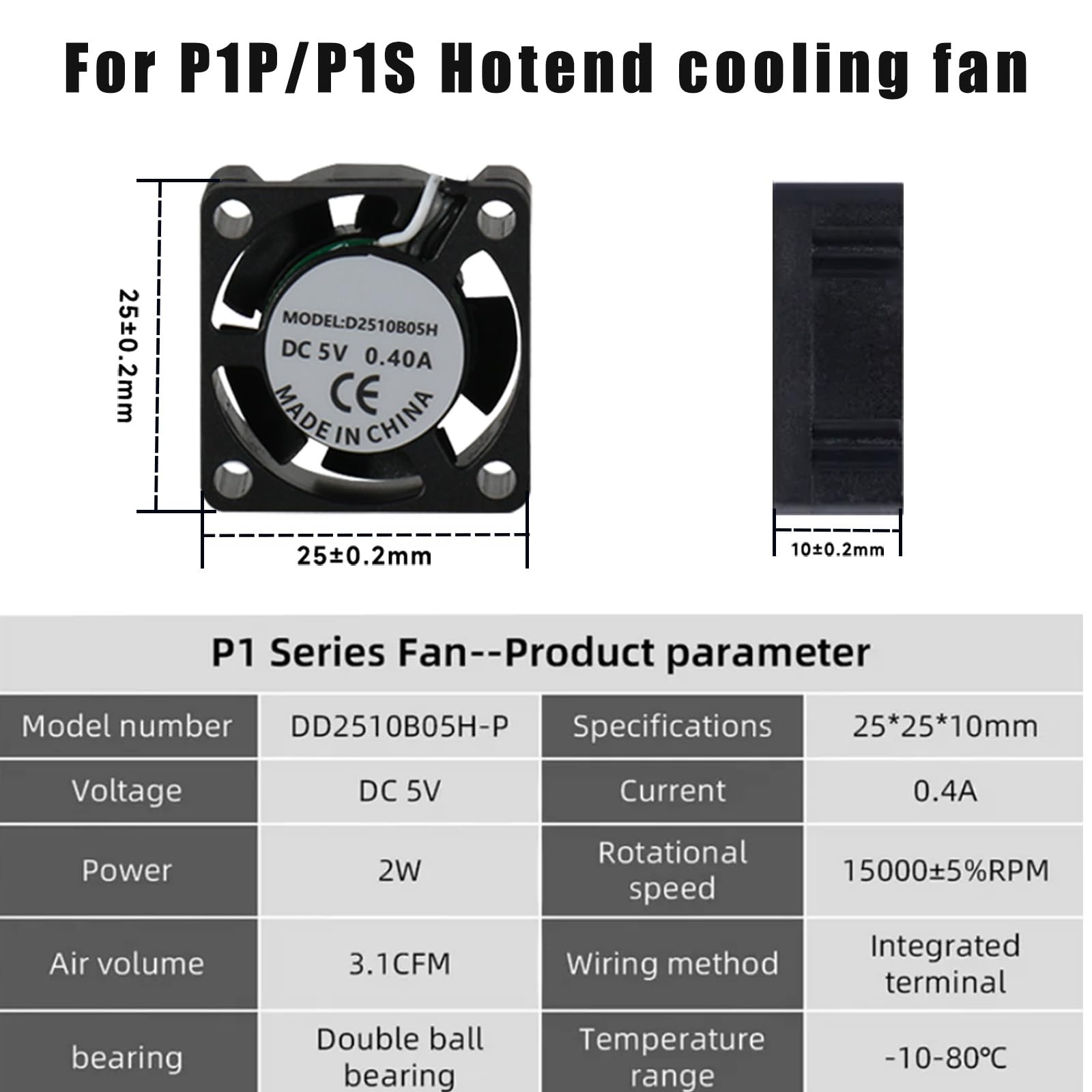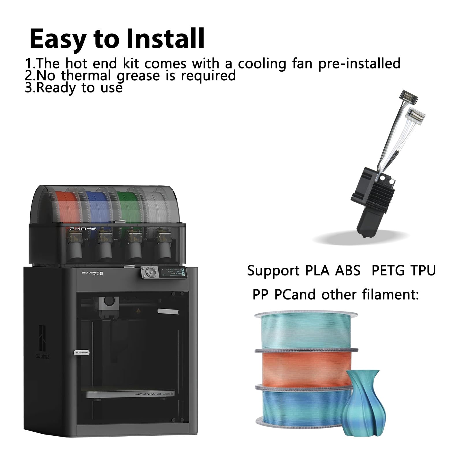 - Compatible models: This hot end kit is compatible with bambu lab P1/P1P 3D printers. The hot end kit comes with a fan pre-installed, no thermal grease is required, and it can be used directly