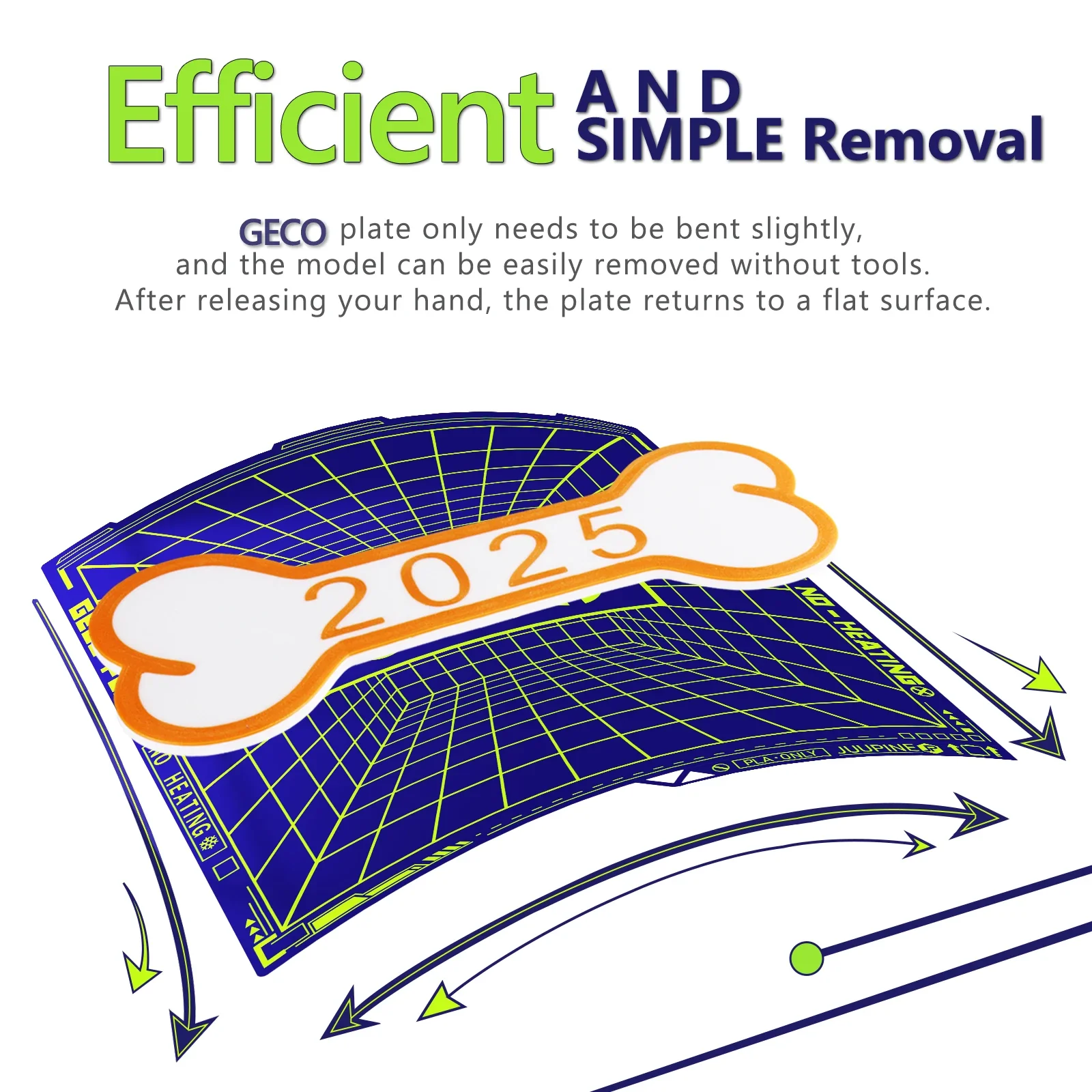 High quality spring steel is the main supporting structure,most of the time, you can easily get the model out without bending or any tools, if it's stuck, you can bend the GECO plate slightly, take the model, and then it will return to being flat