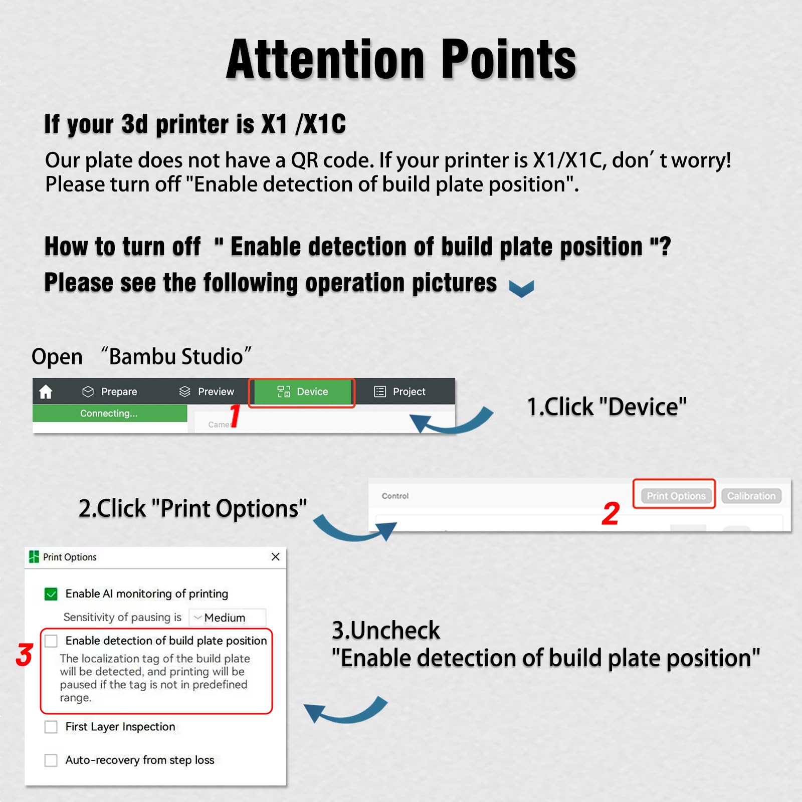- 【High Temperature Resistanceand Compatible Filaments】The bambu build plate print bed surface is resistant to high temperature 200°C .After our extensive testing, we recommend Flake and Galaxy build plate to print PLA / TPU /PETG/ABS,If you want to print other filaments, please adjust the parameters.Highly suggested turn off "Enable detection of build plate position" if your pritner is Bambu lab X1/X1C/X1E.