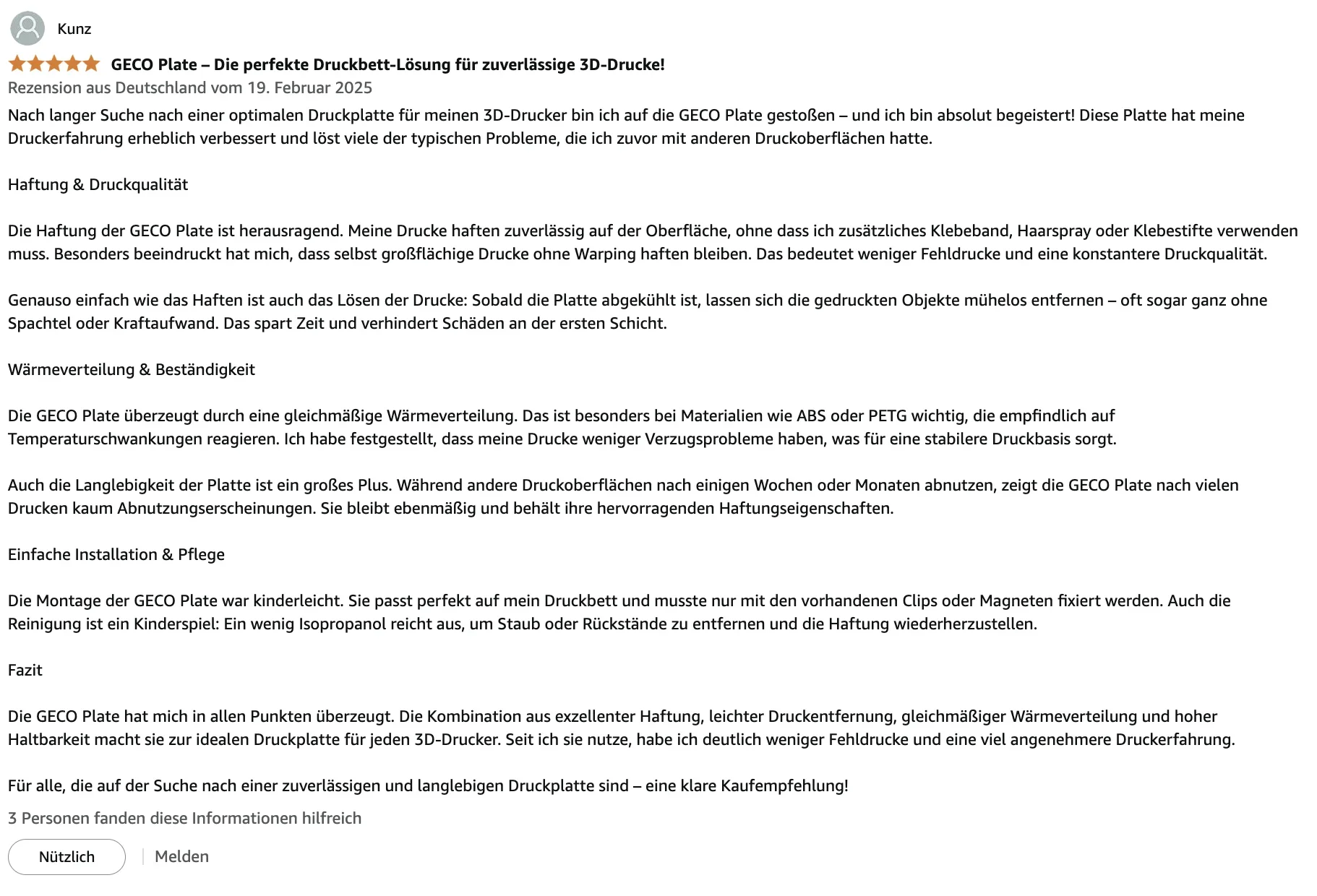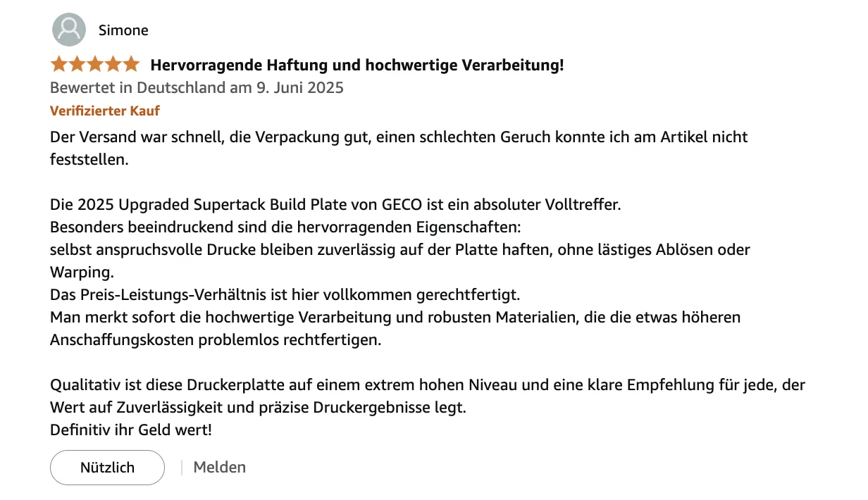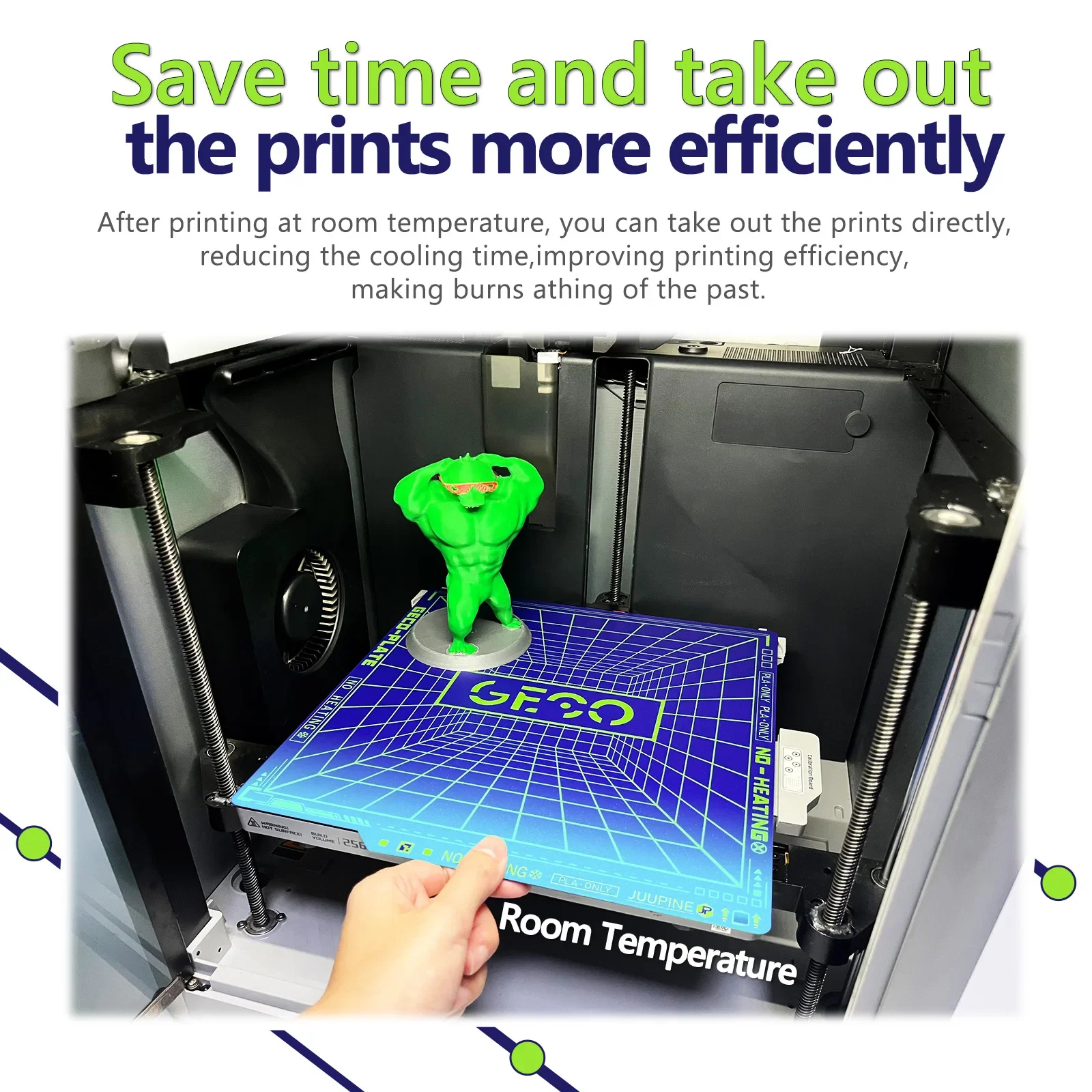 It has excellent adhesion without heating the platform,The model can be firmly attached to the GECO surface,Even beginners can print easily.Long term printing can still maintain 100% perfect adhesion,say goodbye to glue and spray, make every printing process smooth and effortless.