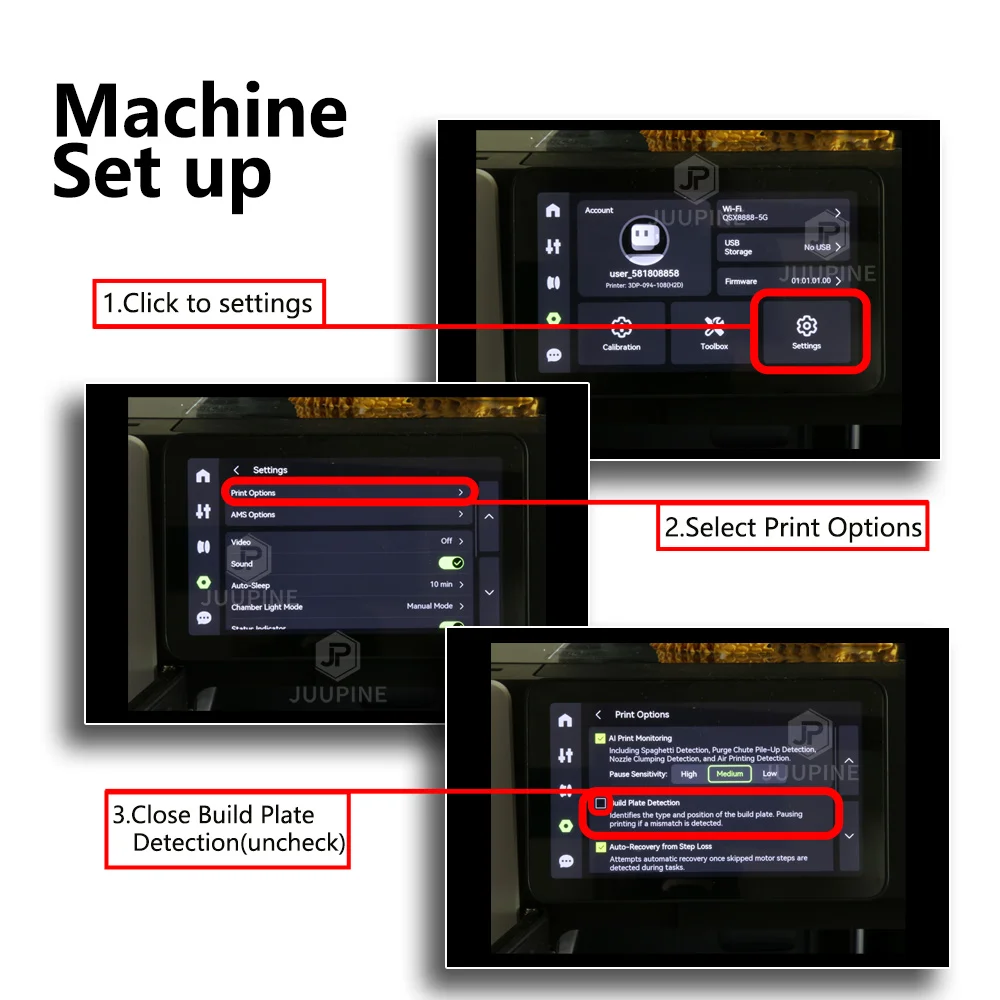 follow these steps to close build plate detection.
