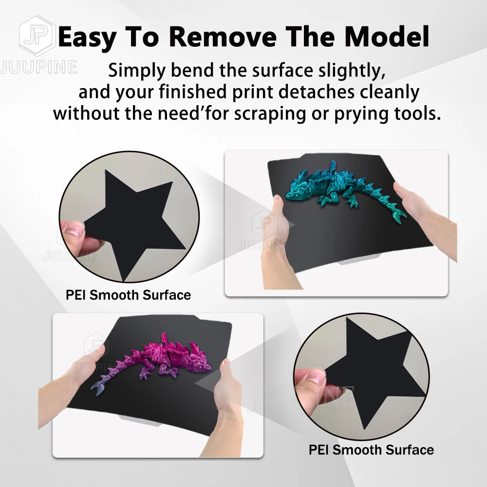 ✔️Easy Release: After printing, the model releases easily as the bed cools or with slight flexing, eliminating the need for forceful scraping.