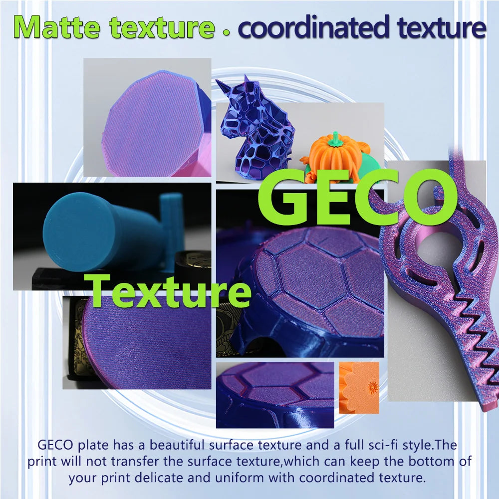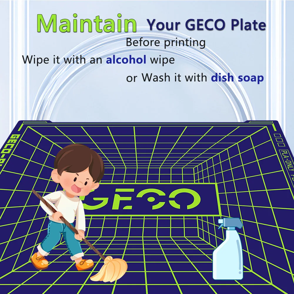 It has excellent adhesion without heating the platform,The model can be firmly attached to the GECO surface,Even beginners can print easily.Long term printing can still maintain 100% perfect adhesion,say goodbye to glue and spray, make every printing process smooth and effortless.