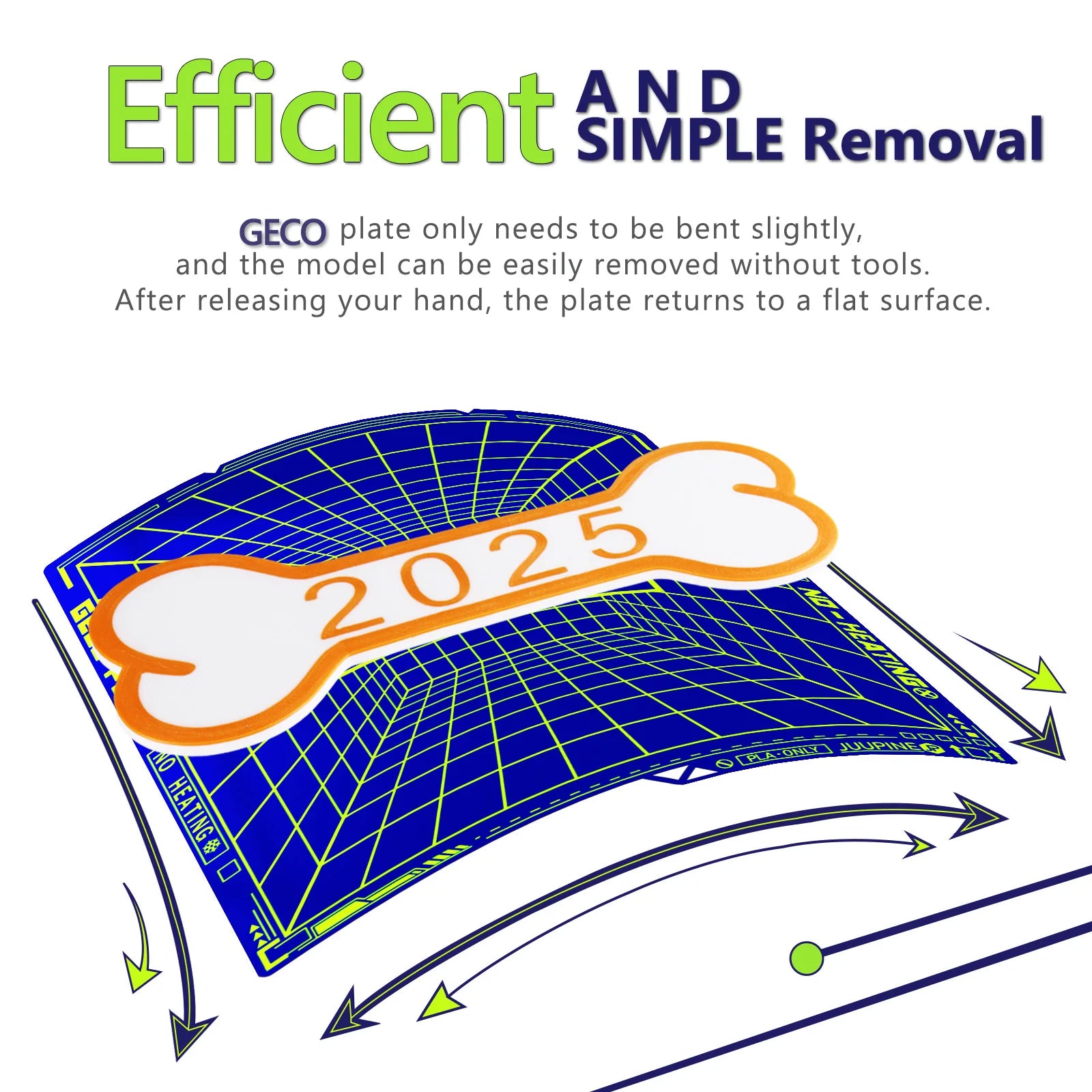 High quality spring steel is the main supporting structure,most of the time, you can easily get the model out without bending or any tools, if it's stuck, you can bend the GECO plate slightly, take the model, and then it will return to being flat